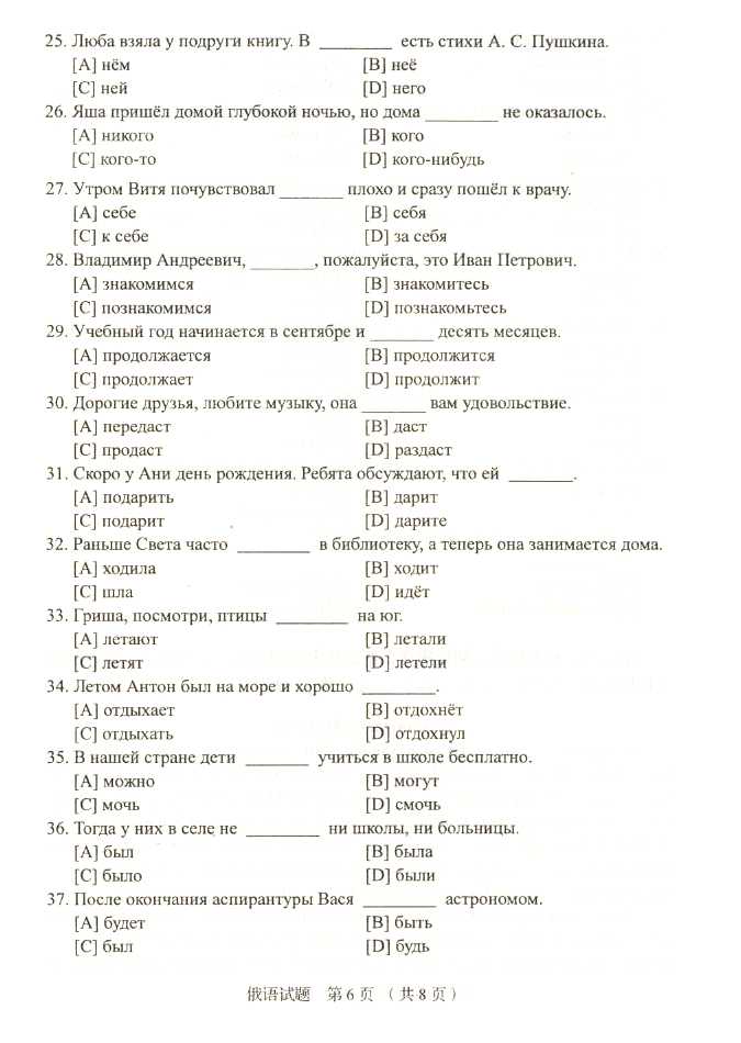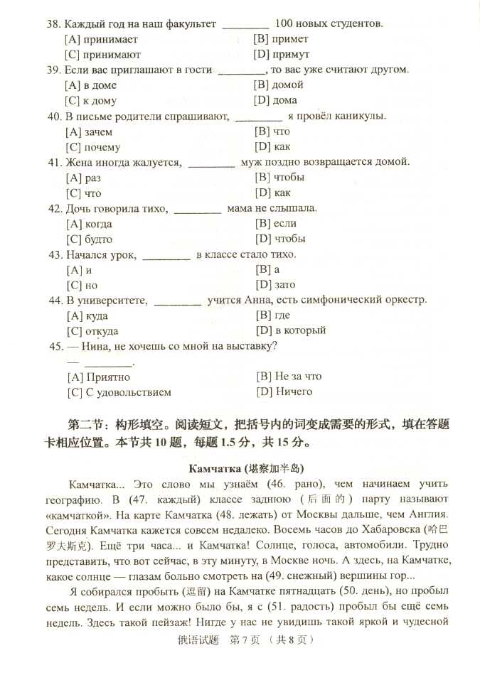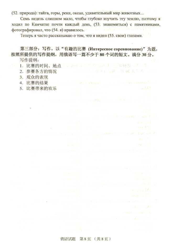 2011年全国成人高考高起点《俄语》试题及答案